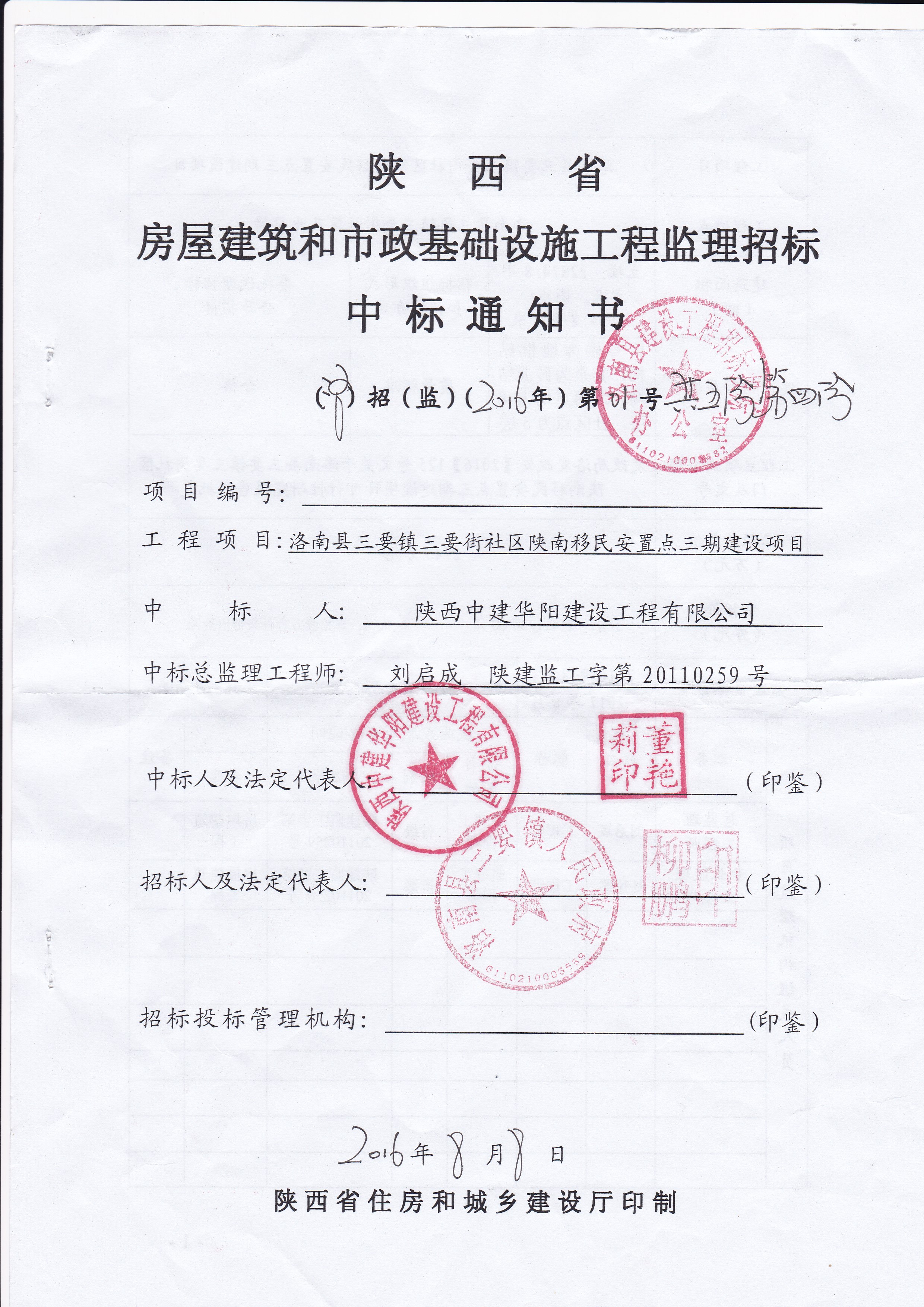 中建華陽公司中標(biāo)洛南縣三要鎮(zhèn)三要街社區(qū)陜南移民安置點三期建設(shè)項目監(jiān)理