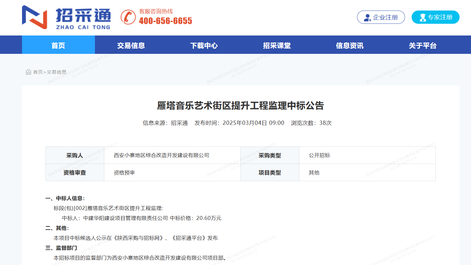 中建華陽(yáng)公司中標(biāo)雁塔音樂(lè)藝術(shù)街區(qū)提升工程監(jiān)理